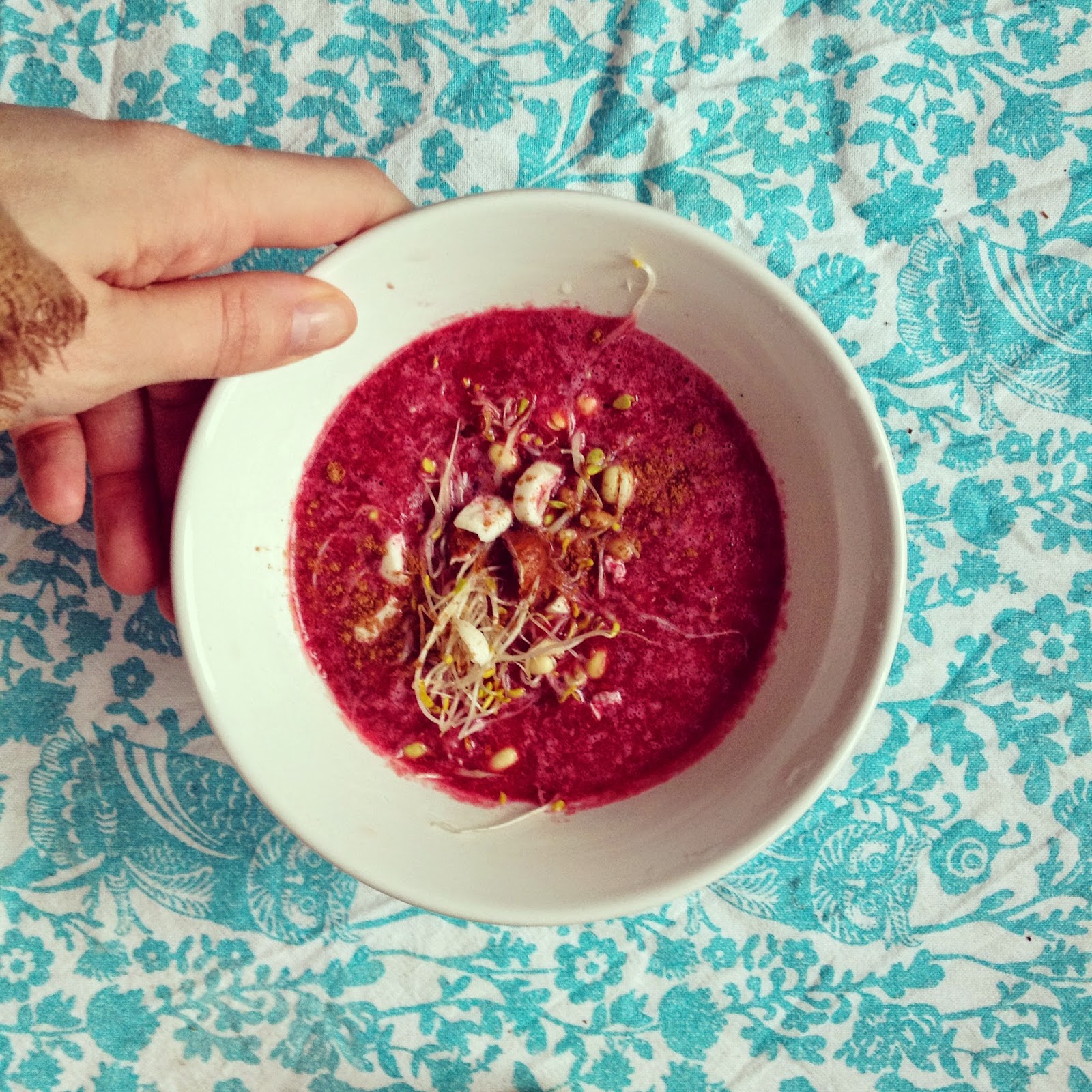 I am almost over the hump flu-wise, but this morning I felt like I needed something to regain my strength. I’ve taken on eating smoothies in bowls, which makes them a great snack or alternative breakfast and allows you to add some extra-filling toppings. It feels more like a meal and less like you’re downing yet another glass of gooey liquid. Plus: look at the pretty colours! Why wouldnt you want to eat this with a spoon?