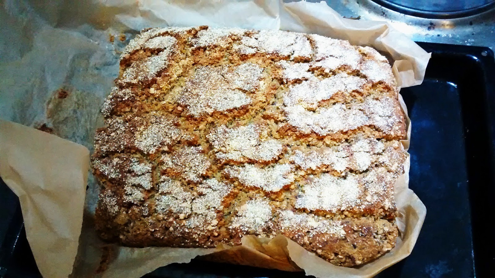 Lately I ran out of spelt flour and ended up with a surprisingly tasty and nutritious gluten free version. I replaced the spelt flour with chickpea flour, linseeds, buckwheat and corn flour – basically everything that was at hand – in equal parts.