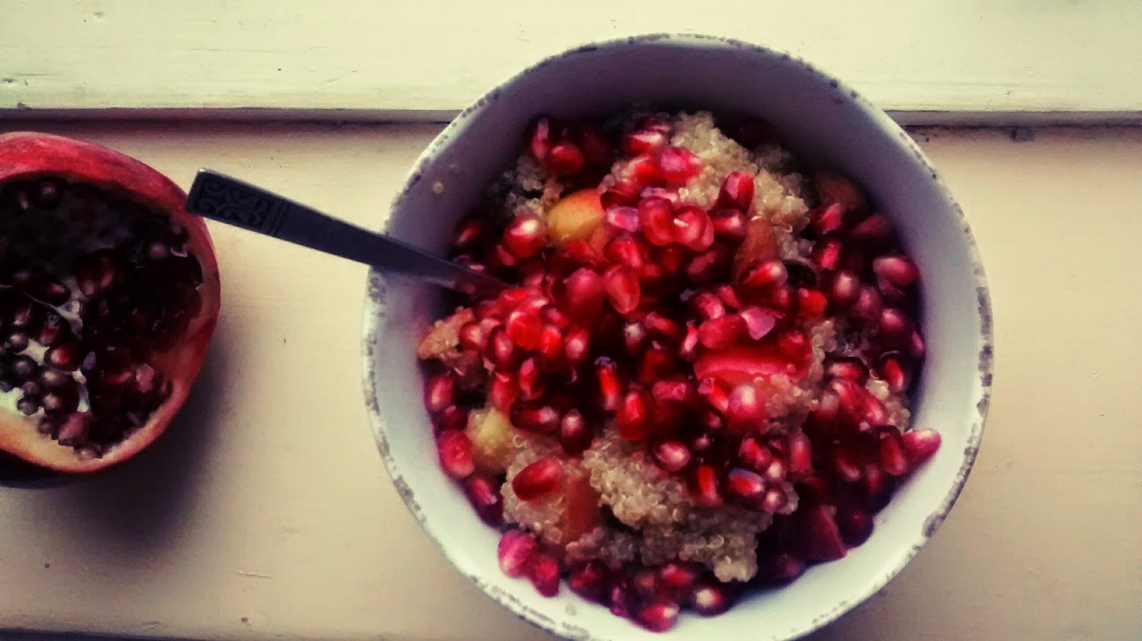 The solution: A simple warm quinoa porridge bowl providing several essential amino acids, stuffed with refreshing vitamins, vitalizing carbohydrates and tasty spices to gently waken your digestive system.